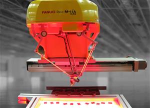 Optional smart features such as integrated FANUC iRVision, line tracking and visual line tracking make the FANUC M-1iA robot a great choice for precision handling of randomly-placed parts at high speeds.